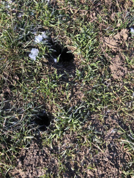 Гризунами заселено 30% обстежених площ посівів озимої пшениці, середня чисельність колоній гризунів та житлових нір становить 1,3 кол. з 1,5 житлової нори, максимально - 2 кол./га з 5 житловими норами (на крайових смугах).