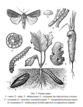Для їхнього розвитку треба додаткове живлення нектаром на квітучій рослинності. Яйця відкладають по одному або невеликими групами на нижньому боці листків і черешків бур’янів, на сухі рослинні рештки або на легкий, добре оброблений ґрунт з рідкою рослинністю. У середньому одна самка відкладає від 470 до 2200 яєць, що залежить від умов живлення гусениць і метеликів. Метелики першого покоління відкладають яйця на кукурудзу, просо та овочеві культури, другого покоління – на підготовлені для посівів озимих культур поля з непаровими попередниками. Ембріональний розвиток за температури повітря +28…+30°С триває 2-5 діб, а при +10…+12°С – 24 доби.